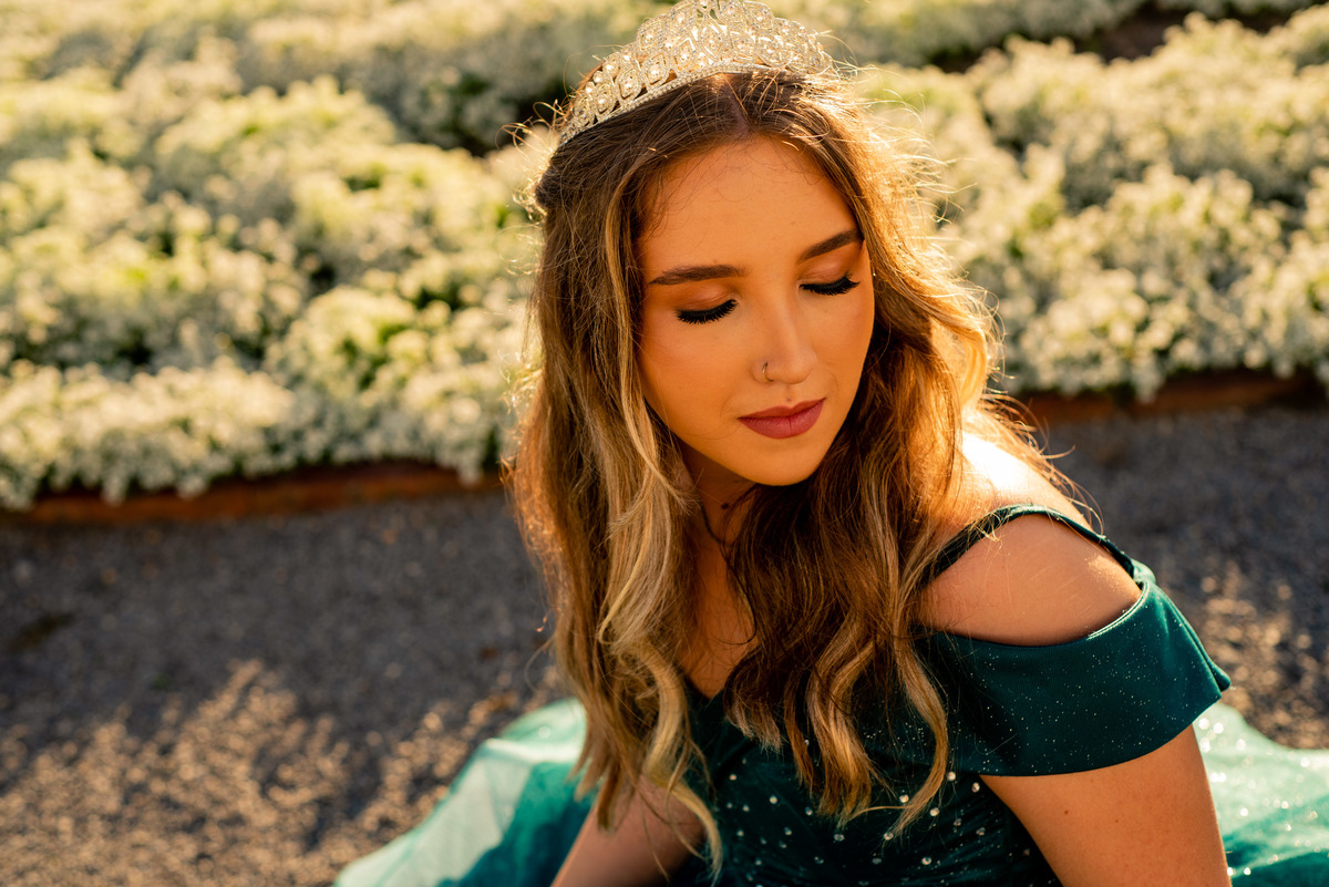 Quando não há o que dizer… as FLORES falam uma tarde encantada neste lugar repleto de VIDA, luz e alma, um paraíso perfeito para eternizar os 15 anos mágicos da tão linda Evelyn.