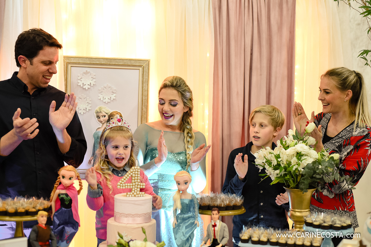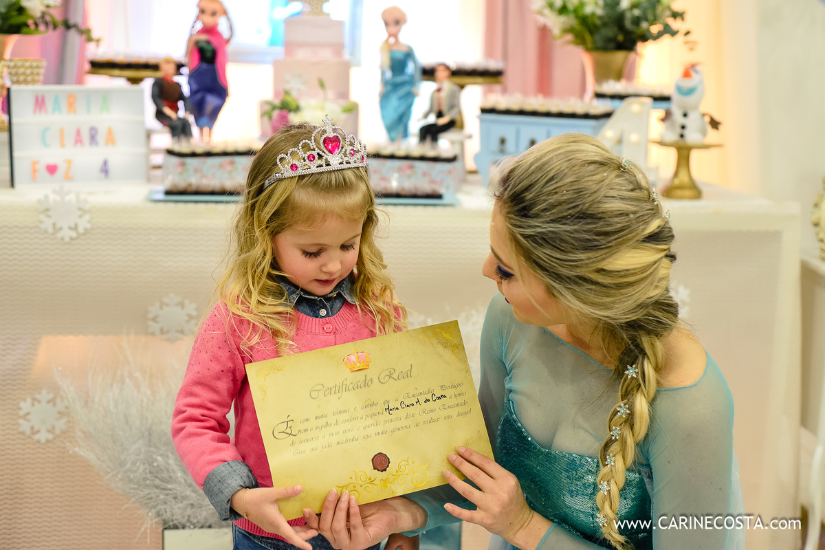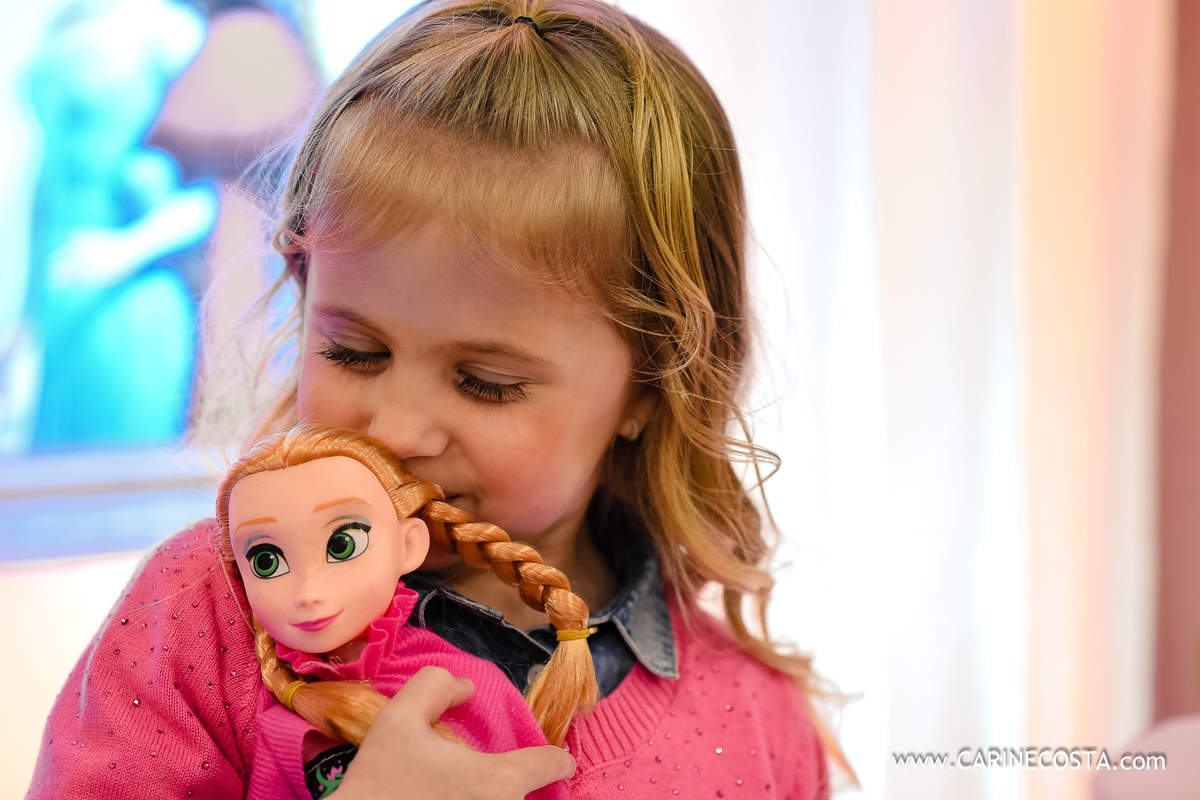 Como foi lindo ver o sorriso desta boneca ao ver a linda Elsa, a surpresa da festa chegar...