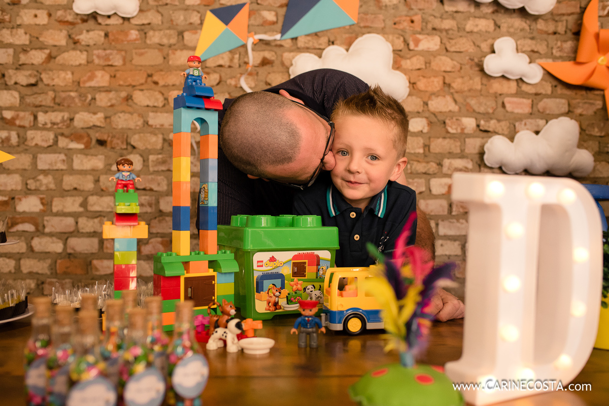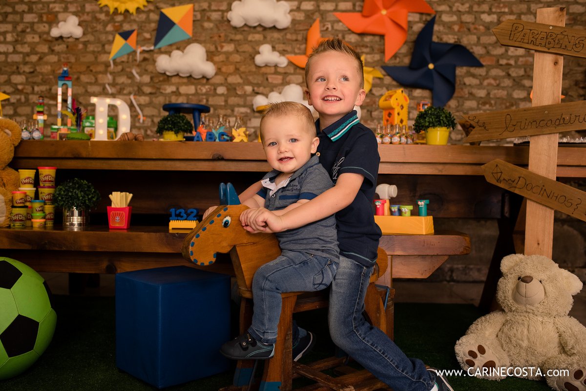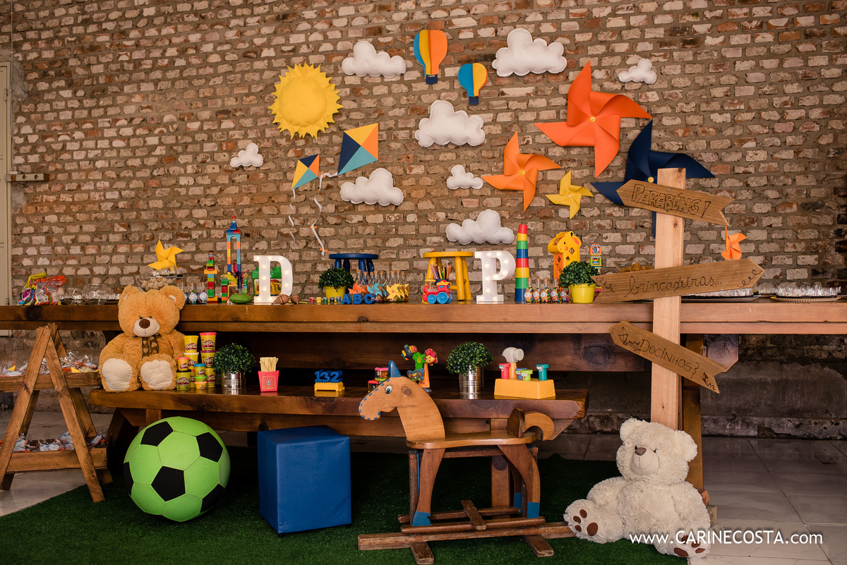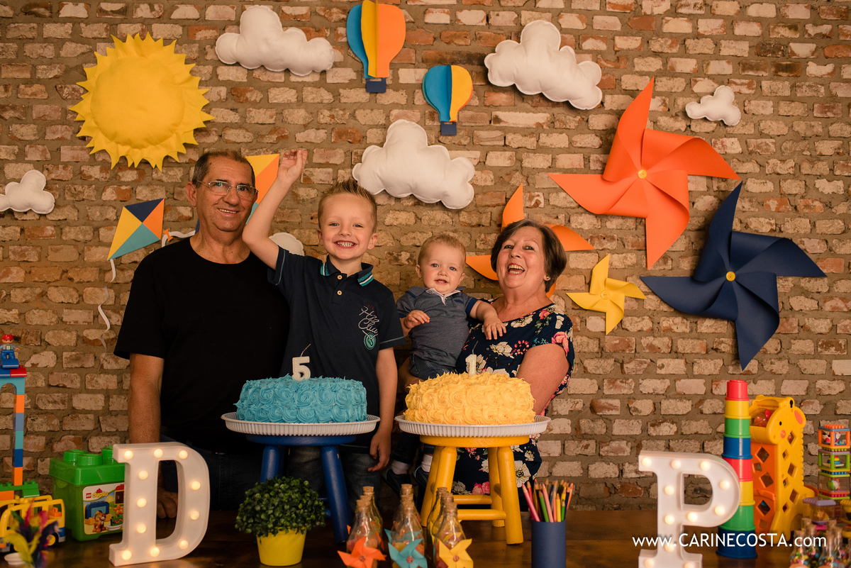O lugar, o dia, os aniversariantes, as brincadeiras, a decoração feita pelos papais, a família, os amigos,
