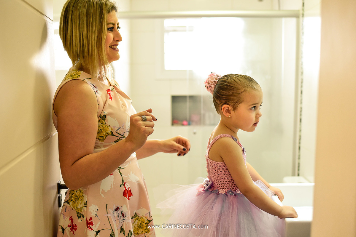 Eu amo iniciar a festa assim... indo na casa da amada aniversariante e contando a história desta festa desde a hora de se arrumar, com a ajuda dos seus amorosos papais.